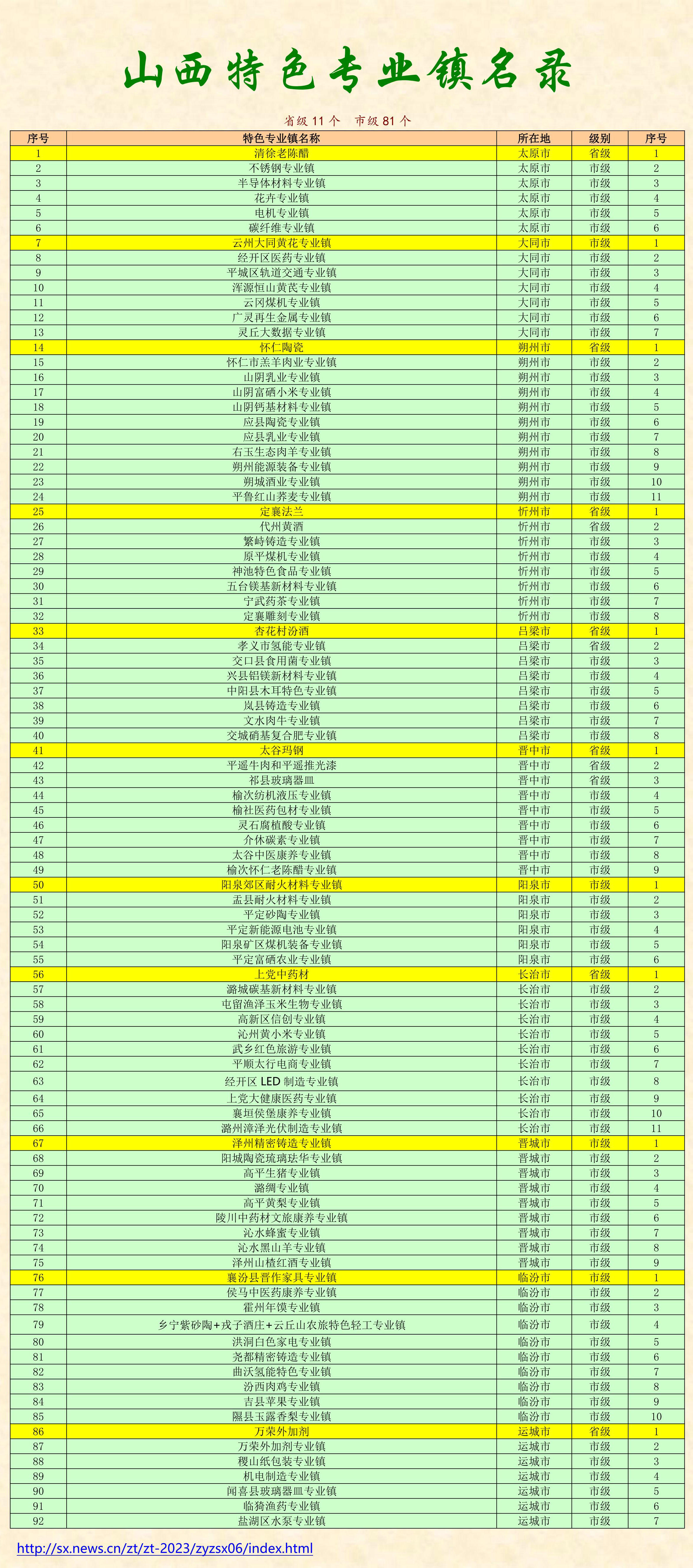 山西特色專業(yè)鎮(zhèn)名錄92個(gè)