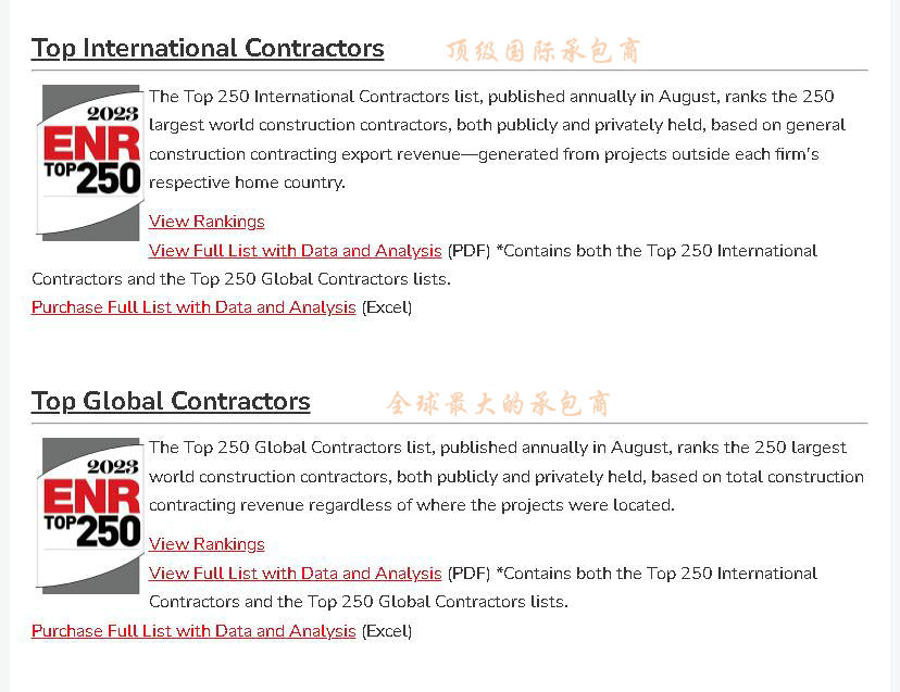 查看完整列表的數(shù)據(jù)和分析(PDF) *包含國(guó)際承包商250強(qiáng)和全球250強(qiáng)承包商名單。