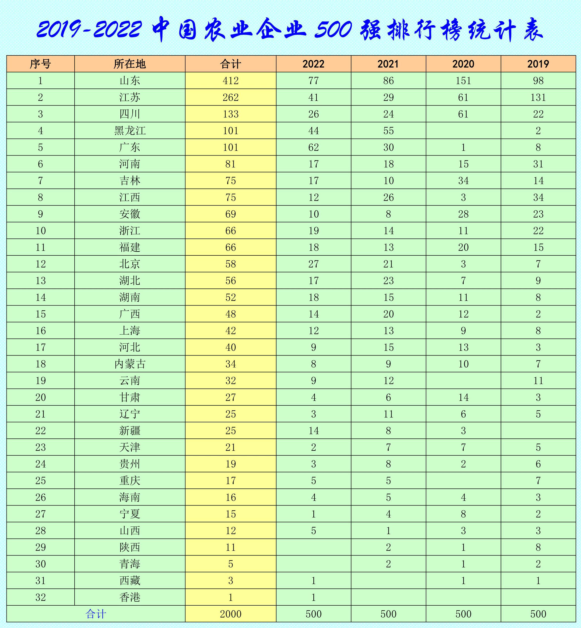 2019-2022中國農(nóng)業(yè)企業(yè)500強(qiáng)排行榜