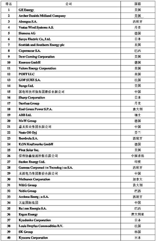 【行業(yè)資料】歷屆全球新能源企業(yè)500強排行榜