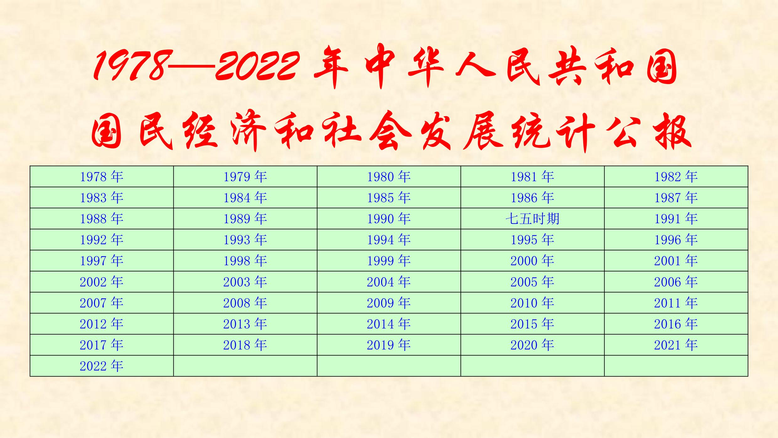 1978—2022年中華人民共和國國民經(jīng)濟和社會發(fā)展統(tǒng)計公報