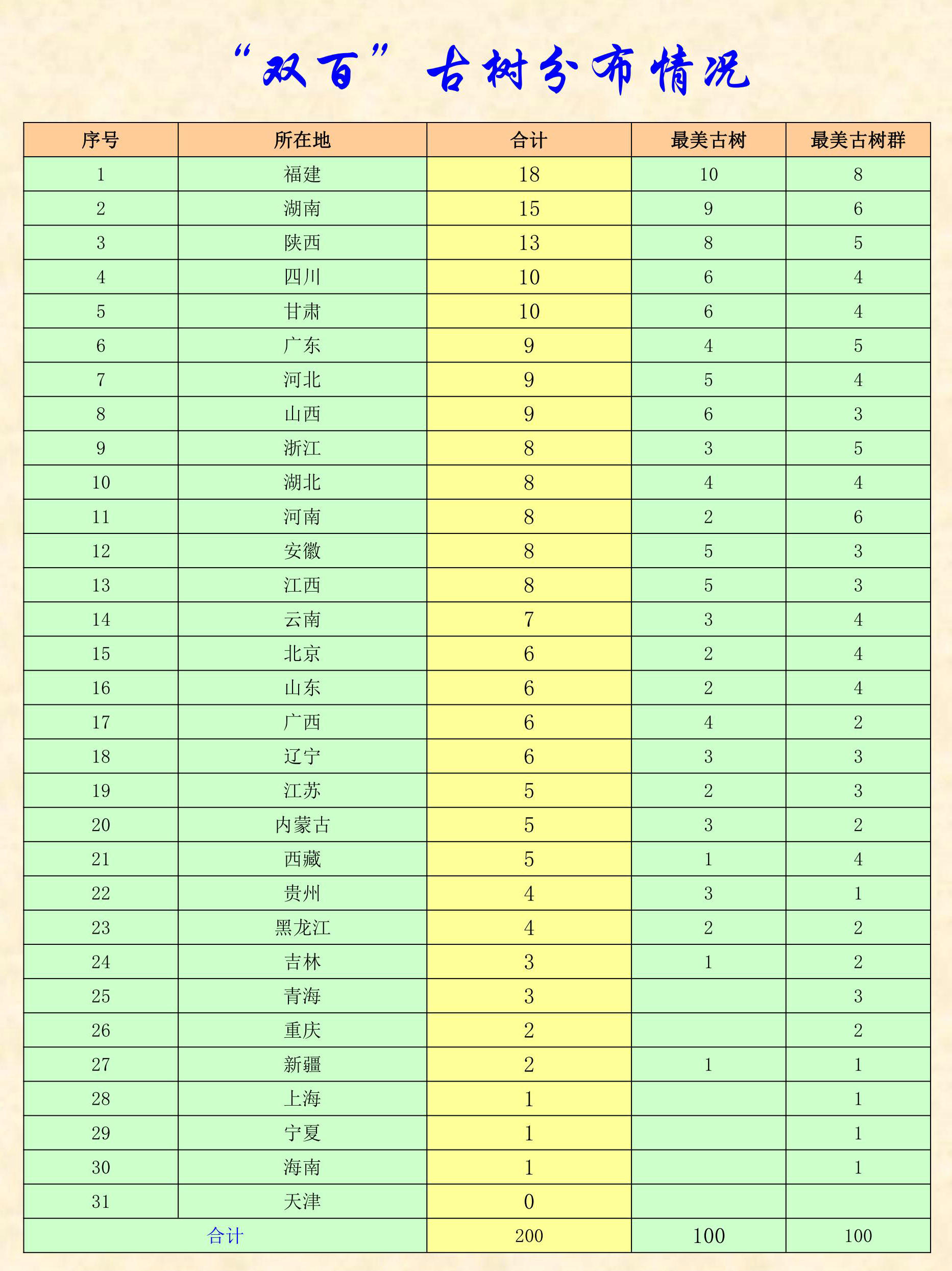 “雙百”古樹名單揭曉