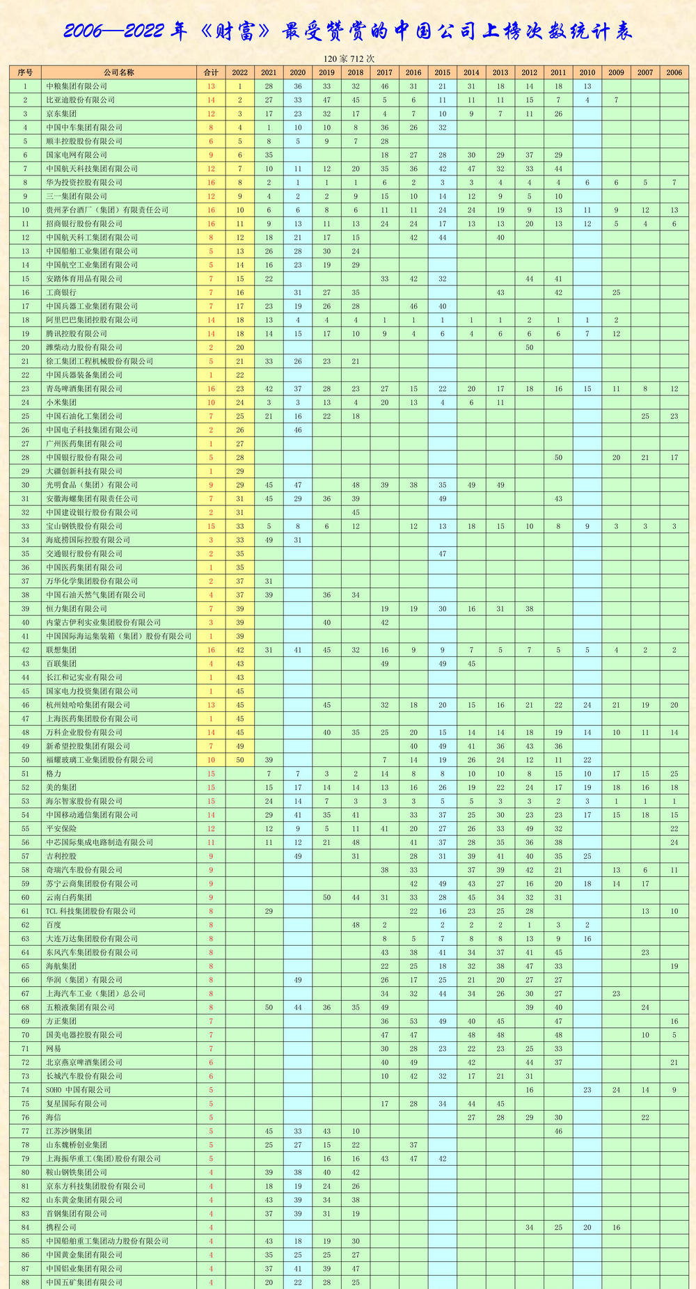 2006—2022年《財(cái)富》最受贊賞的中國(guó)公司