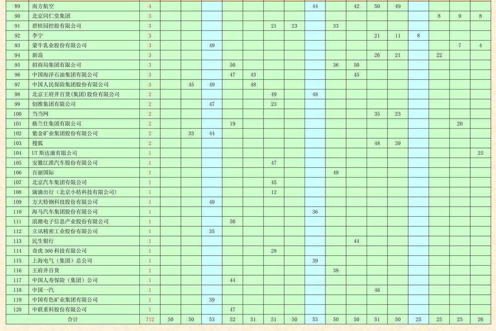 序號(hào) 公司名稱 行業(yè) 排名 年度