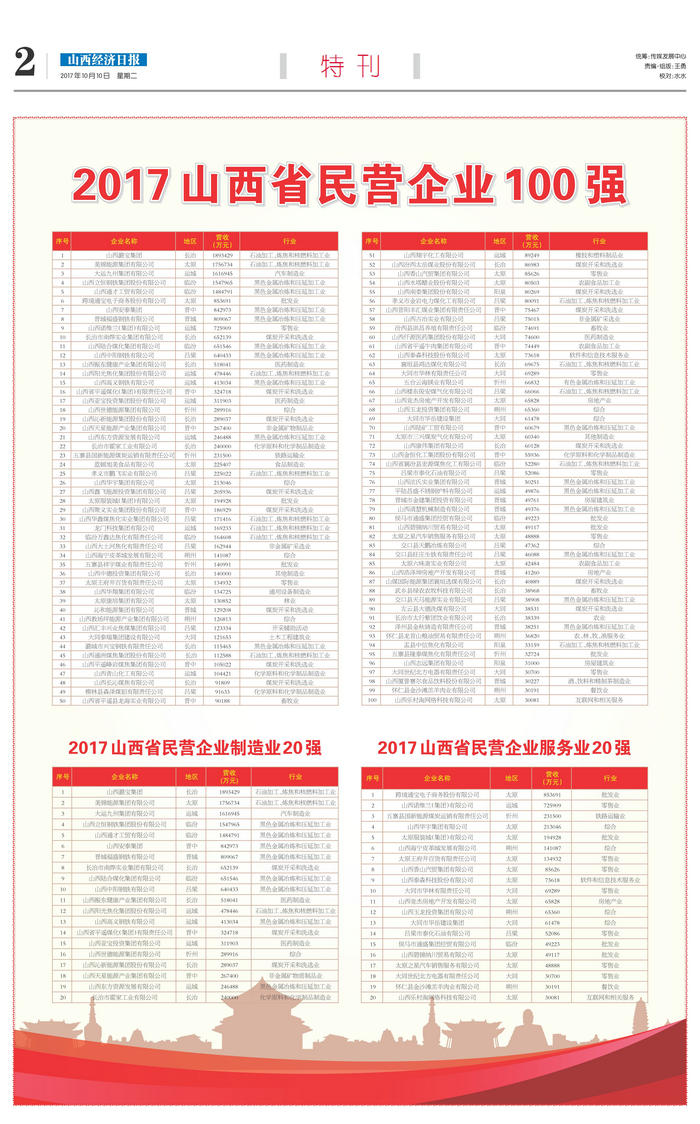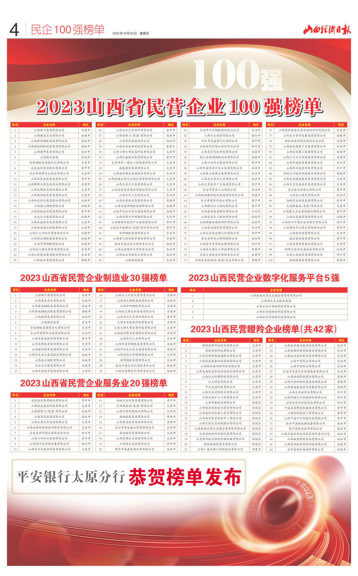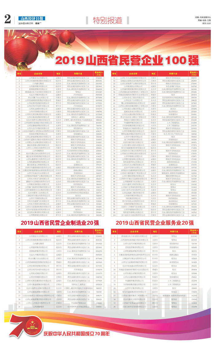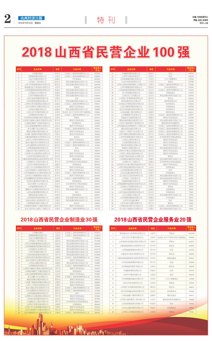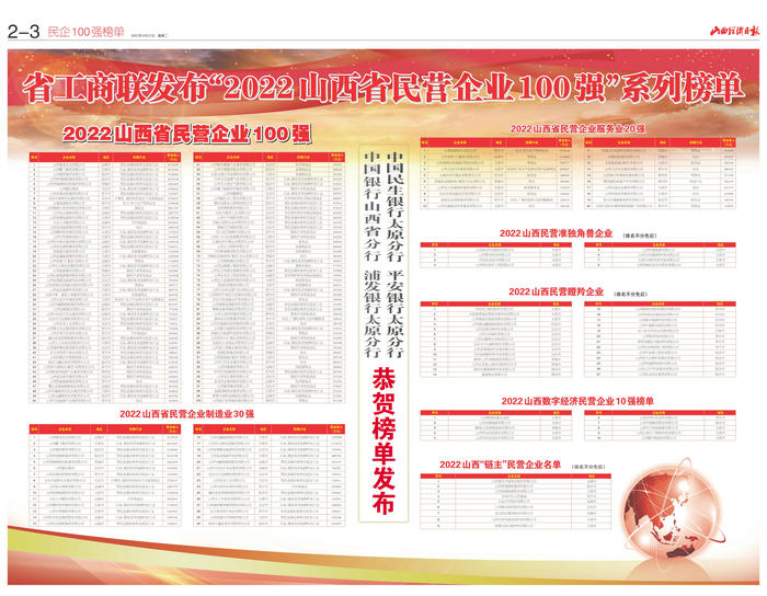 2023 山西省民營企業(yè)服務(wù)業(yè) 20 強(qiáng)榜單