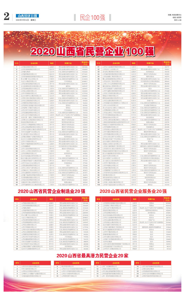 2023 山西省民營企業(yè)制造業(yè) 30 強(qiáng)榜單