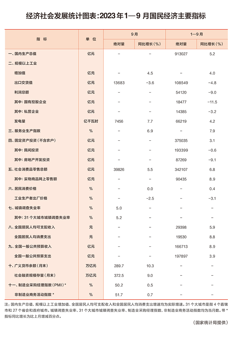 2023年1—9月國民經(jīng)濟(jì)主要指標(biāo)