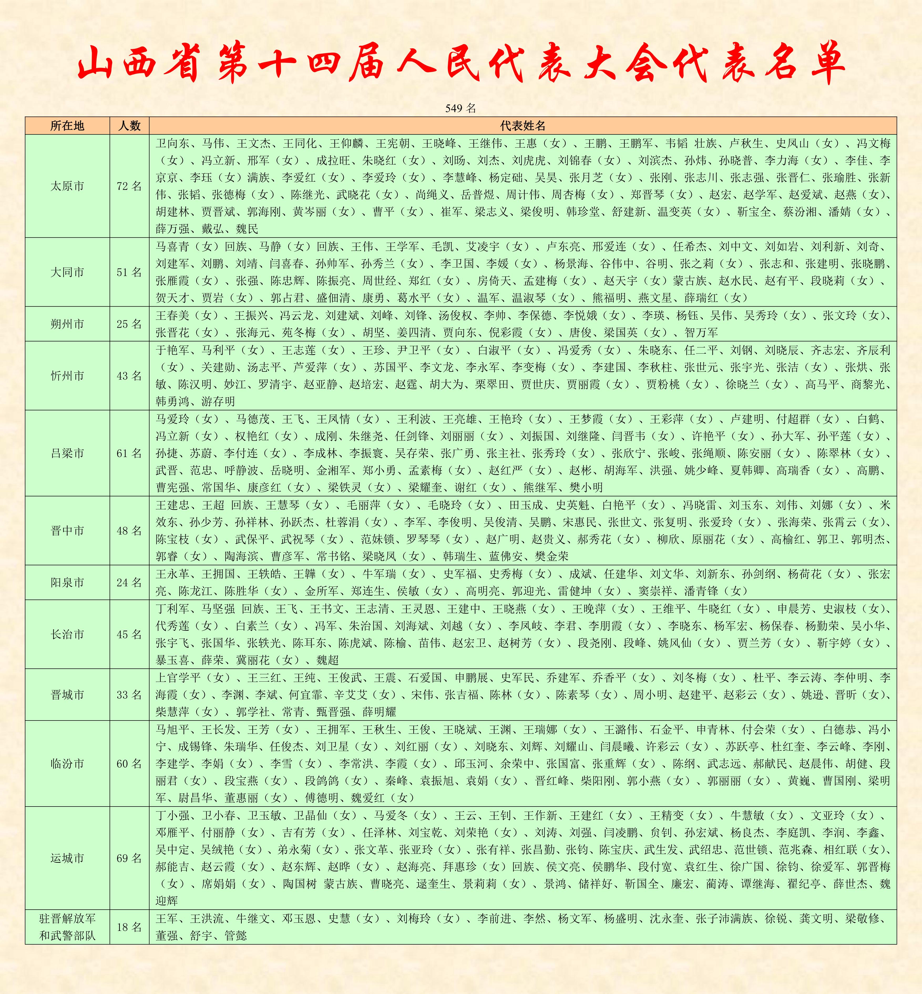 山西省第十四屆人民代表大會代表名單和中國人民政治協(xié)商會議第十三屆山西省委員會委員名單(各549名)