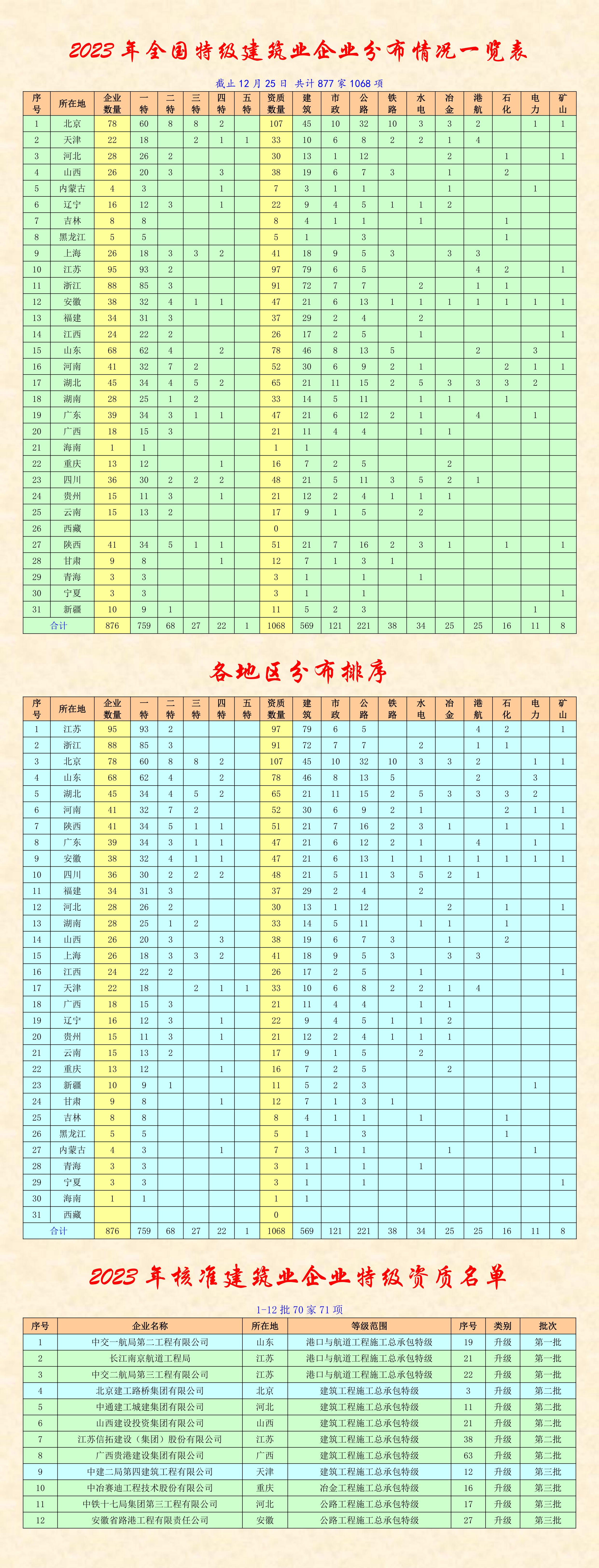 【行業(yè)資料】2023年全國特級資質(zhì)建筑業(yè)企業(yè)名單