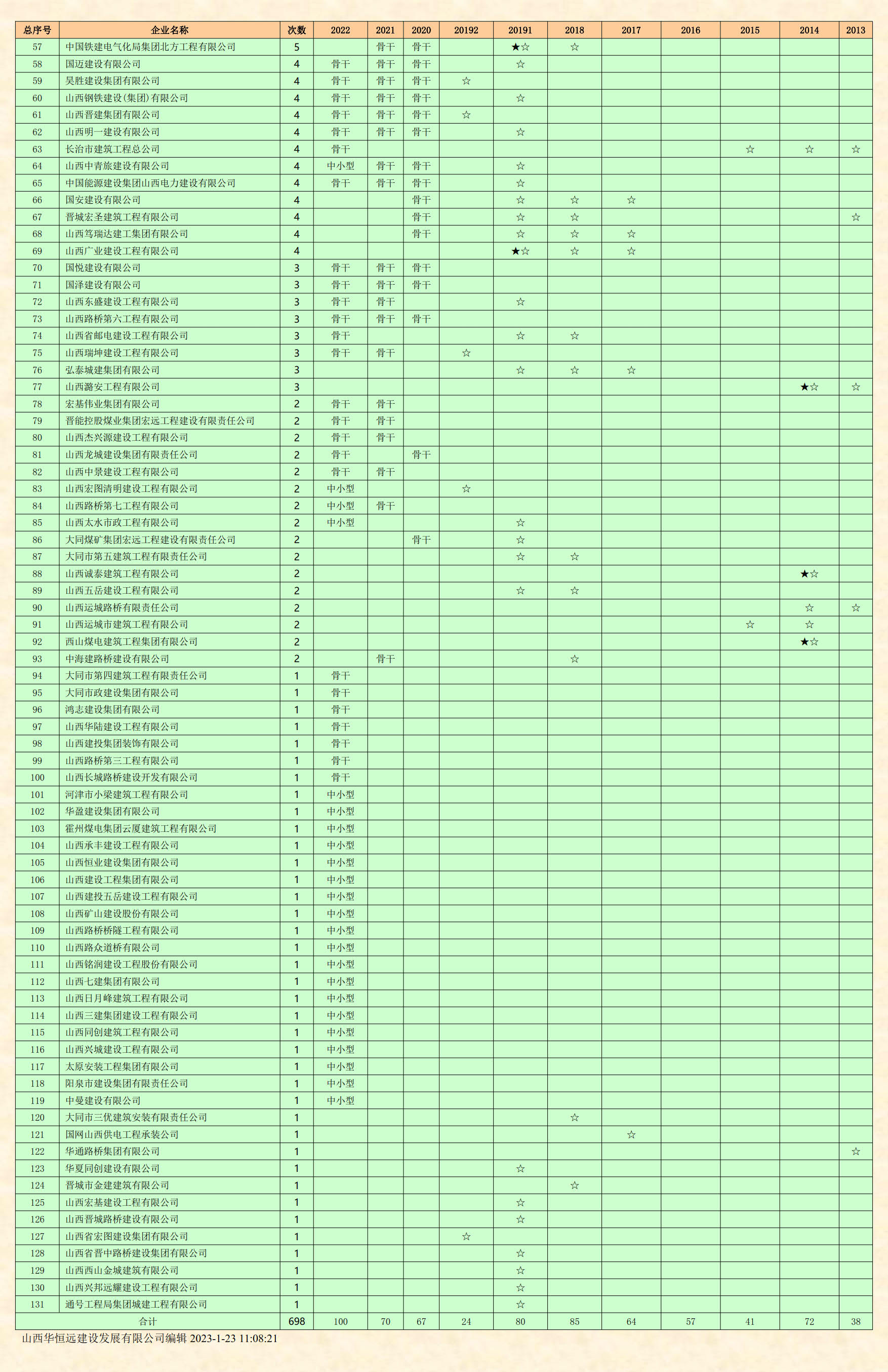 歷年山西省骨干、優(yōu)秀骨干 和10強(qiáng)骨干建筑業(yè)企業(yè)名單及統(tǒng)計(jì)表
