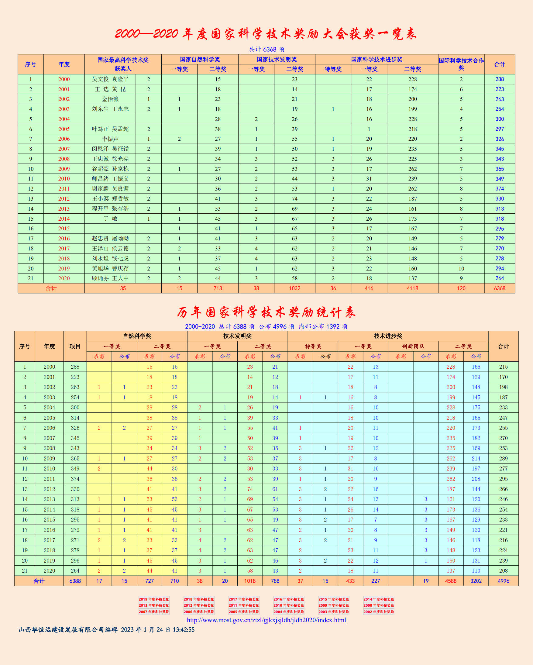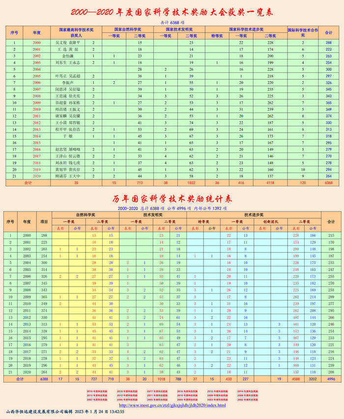 2000—2020年度國家科學(xué)技術(shù)獎勵大會獲獎名單