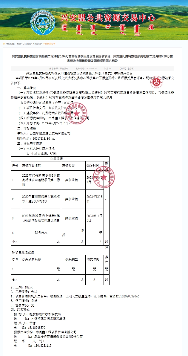 興安盟扎賚特旗巴彥高勒鎮(zhèn)二龍濤村0.94萬畝高標準農(nóng)田建設增發(fā)國債項目、興安盟扎賚特旗巴彥高勒鎮(zhèn)二龍濤村0.50萬畝高標準農(nóng)田建設增發(fā)國債項目第八標段