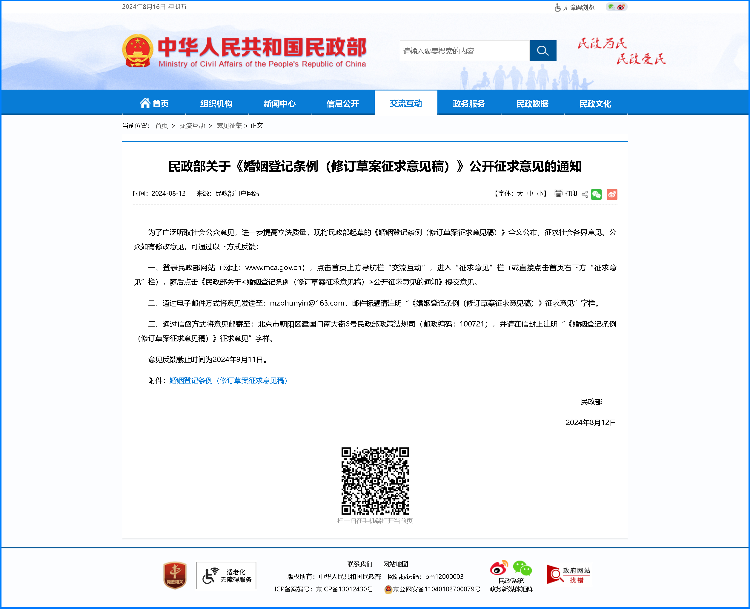 新華社北京8月16日電 題:民政部有關司局負責人解讀《婚姻登記條例(修訂草案征求意見稿)》
