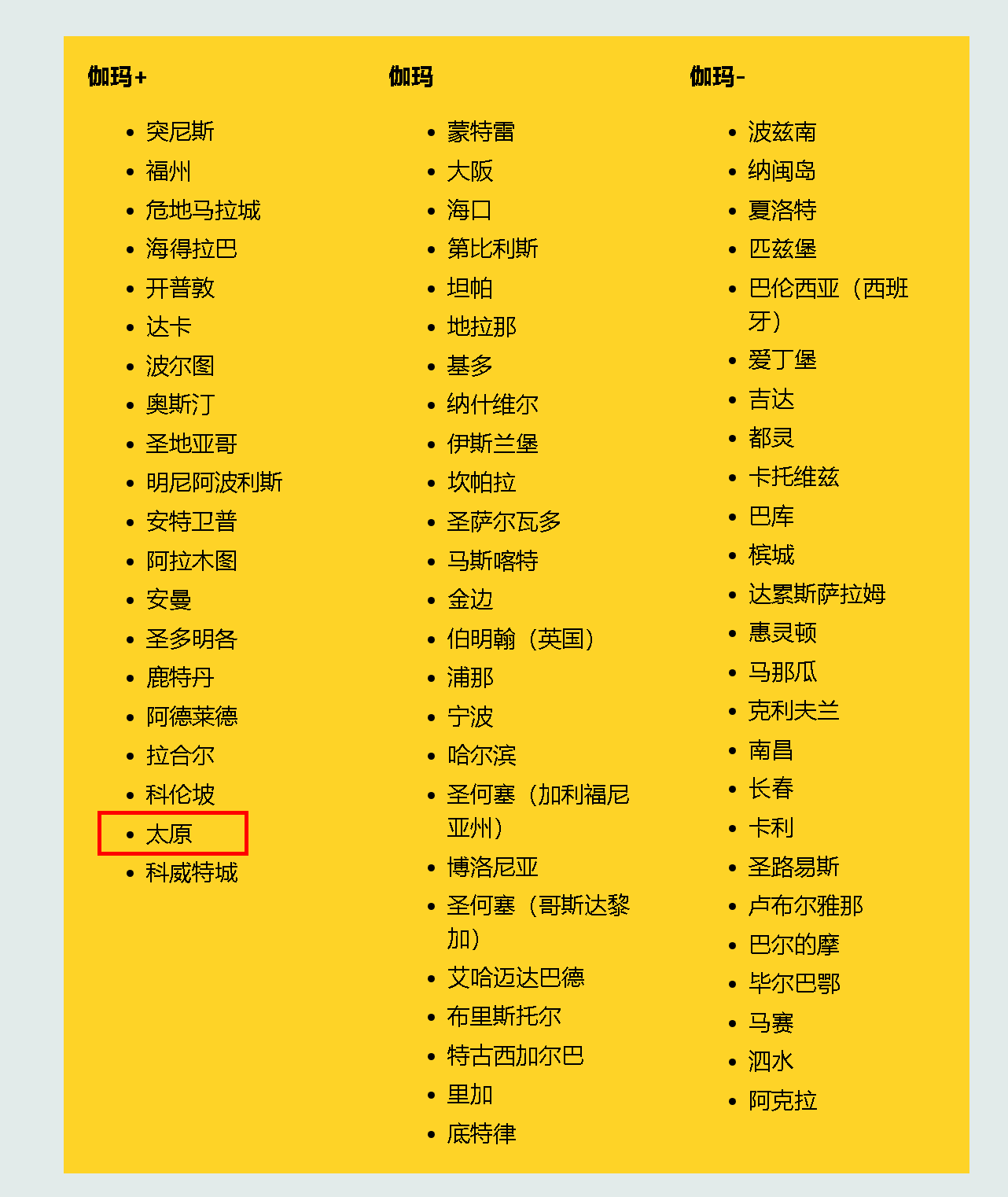 世界晉商網(wǎng)注意到,在Gamma級城市中,太原升級為了Gamma+城市,也就是世界強(qiáng)三線城市。