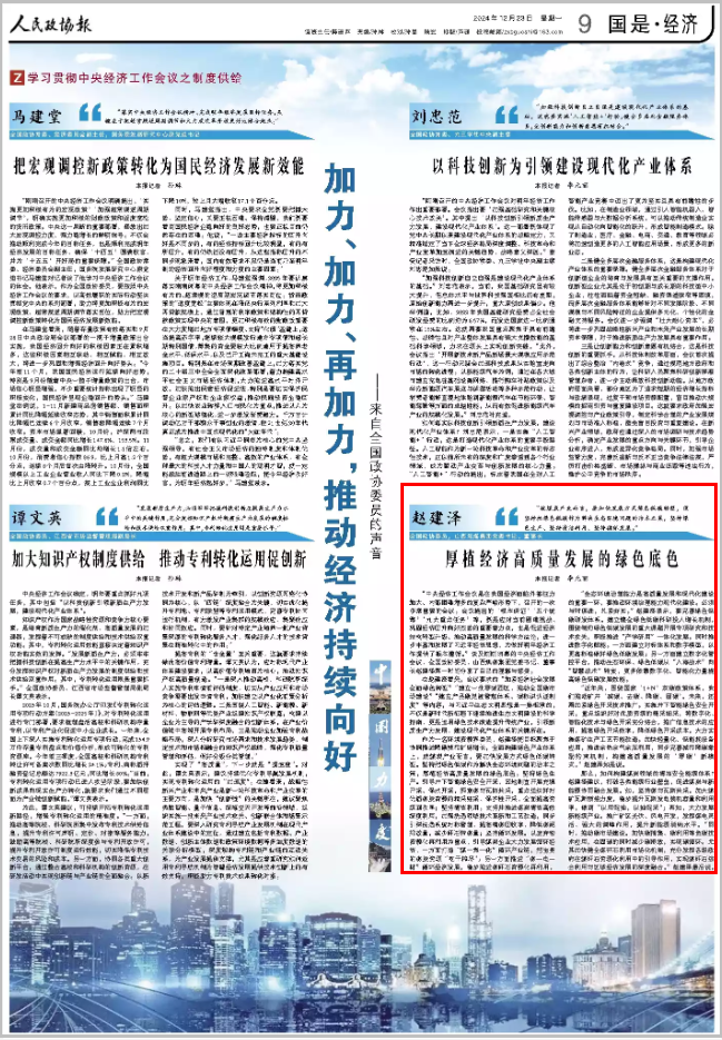 在趙建澤看來(lái),會(huì)議要求的“加緊經(jīng)濟(jì)社會(huì)發(fā)展全面綠色轉(zhuǎn)型”“建立一批零碳園區(qū),推動(dòng)全國(guó)碳市場(chǎng)建設(shè)”“建立產(chǎn)品碳足跡管理體系、碳標(biāo)識(shí)認(rèn)證制度”等內(nèi)容,與習(xí)近平生態(tài)文明思想是一脈相承的,不僅是新時(shí)代新征程下繼續(xù)推進(jìn)生態(tài)文明建設(shè)的科學(xué)指南,更是運(yùn)用綠色技術(shù)改造提升傳統(tǒng)產(chǎn)業(yè),引領(lǐng)新質(zhì)生產(chǎn)力發(fā)展,建設(shè)現(xiàn)代化產(chǎn)業(yè)體系的關(guān)鍵所在。