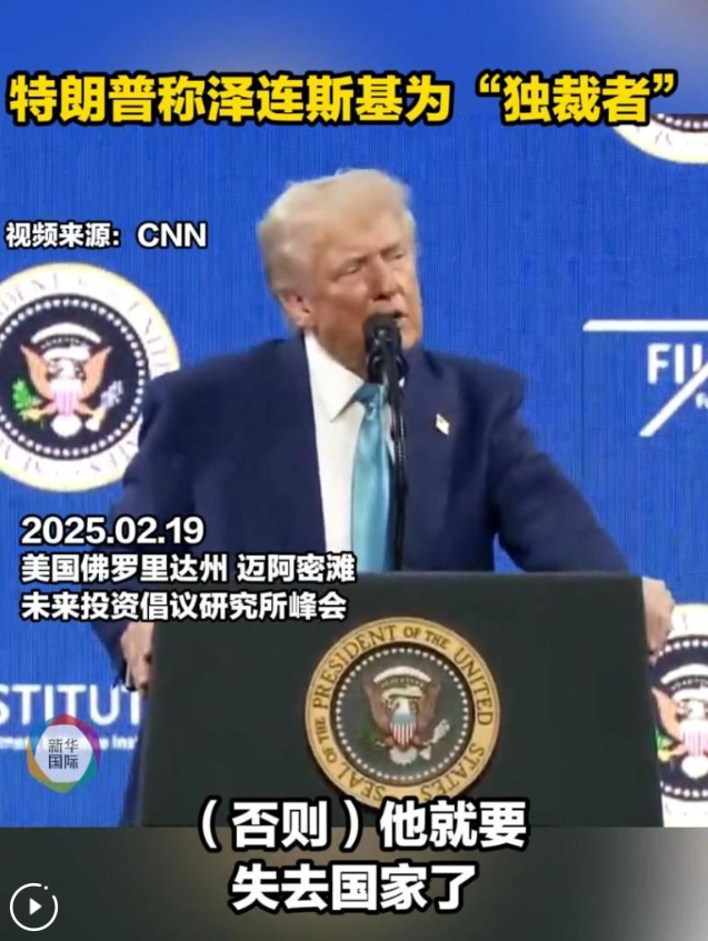 美國總統(tǒng)特朗普19日在佛羅里達(dá)州一場(chǎng)會(huì)議上說,烏克蘭總統(tǒng)澤連斯基是 “獨(dú)裁者”。他警告說,澤連斯基必須迅速采取行動(dòng)以實(shí)現(xiàn)和平,否則將面臨失去國家的風(fēng)險(xiǎn)。