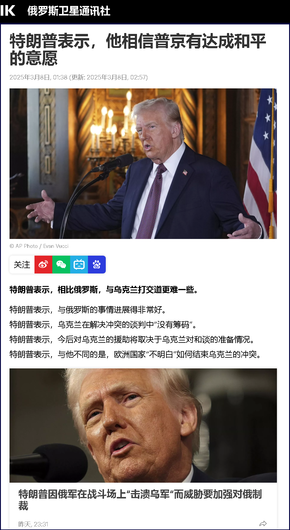本周早些時(shí)候,路透社曾援引消息人士的話報(bào)道稱(chēng),美國(guó)正擬定計(jì)劃,可能放松對(duì)俄羅斯的制裁。白宮已要求美國(guó)國(guó)務(wù)院和財(cái)政部擬定一份可能解除制裁的目標(biāo)清單。負(fù)責(zé)制裁事宜的部門(mén)正就解除對(duì)俄一些實(shí)體和個(gè)人的制裁起草建議。