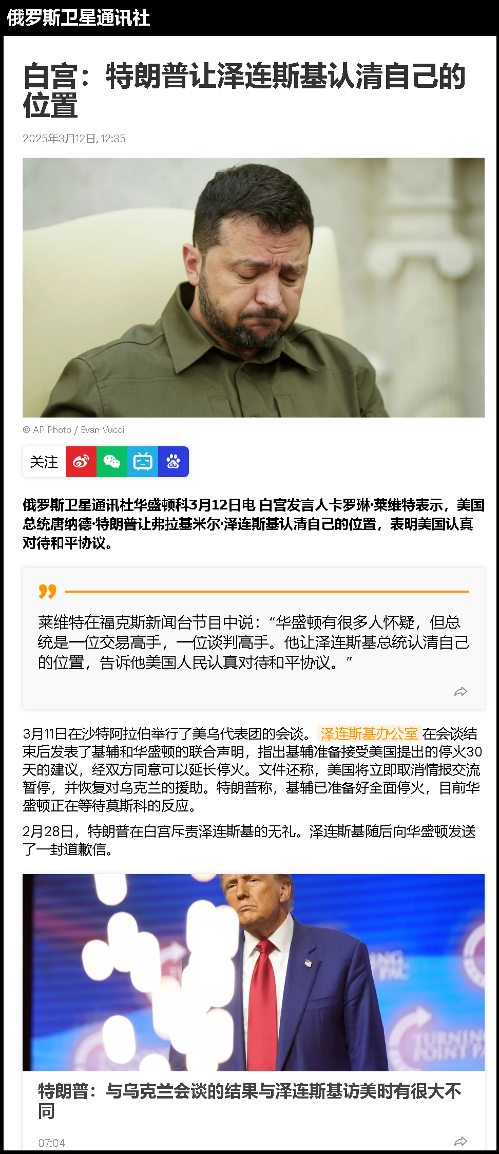 烏克蘭總統(tǒng)澤連斯基當晚在社交媒體上發(fā)文說,烏美吉達會談效果“良好且富有建設性”。烏方愿意接受美方30天?;鸬奶嶙h,但需要美方說服俄方采取相同措施,“如果俄方同意,?;饘⒘⒓瓷А?。