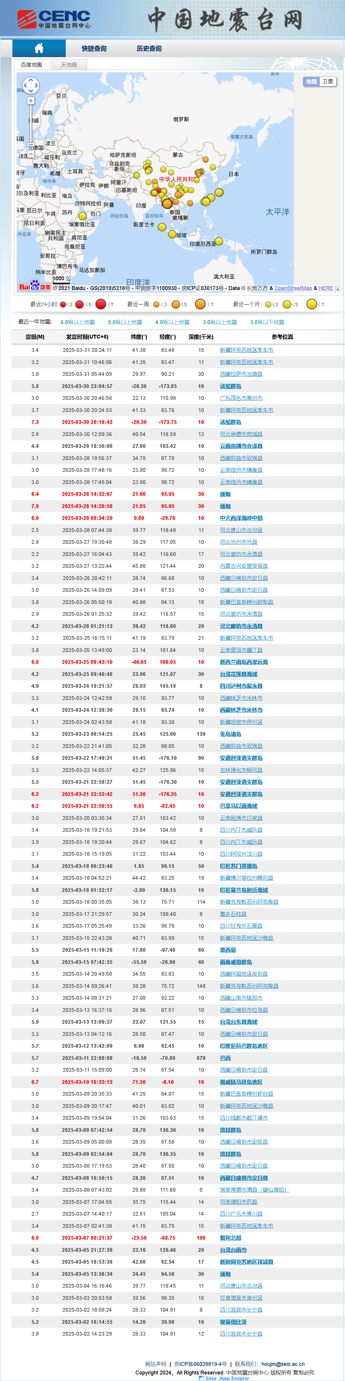 而值得注意的是,3月30日不光湯加發(fā)生了地震,我國的新疆、廣東、西藏都有地區(qū)發(fā)生地震,只是震級相對較小,最大只有3.8級。