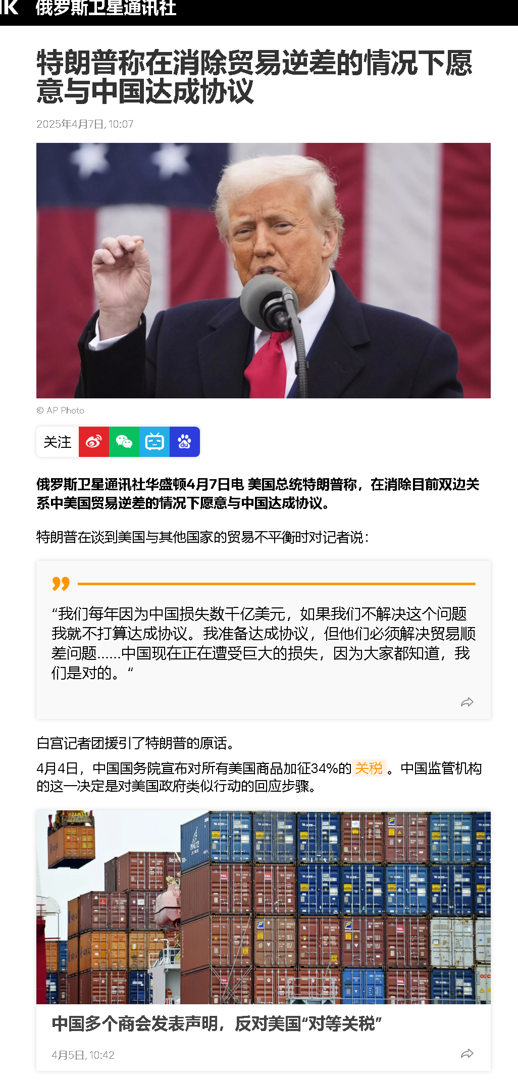 當(dāng)特朗普政府揮舞"對(duì)等關(guān)稅"大棒時(shí),其本質(zhì)是企圖用19世紀(jì)的殖民邏輯重構(gòu)21世紀(jì)的全球經(jīng)貿(mào)秩序。中國(guó)以精準(zhǔn)反制破局,不僅捍衛(wèi)了國(guó)家利益,更掀起了全球治理體系變革的浪潮。在這場(chǎng)重塑世界經(jīng)濟(jì)秩序的博弈中,中國(guó)以"開(kāi)放型反制"戰(zhàn)略,構(gòu)建起多邊主義新范式??梢哉f(shuō),可能連特朗普都萬(wàn)萬(wàn)沒(méi)有想到,我國(guó)的反制這么的“快很準(zhǔn)”?;蛟S是迫于國(guó)內(nèi)民眾的壓力,特朗普的關(guān)稅態(tài)度出現(xiàn)轉(zhuǎn)變,提出減稅條件:只要美國(guó)和中國(guó)的貿(mào)易逆差問(wèn)題能夠得到解決,就可以達(dá)到關(guān)稅和解協(xié)議。