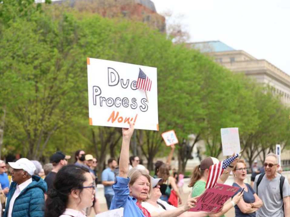 記者現(xiàn)場采訪、觀察發(fā)現(xiàn),抗議者除了對具體政策表達(dá)不滿,更深層的擔(dān)憂在于制度受到破壞以及憲法面臨危機。不少標(biāo)語牌都包含“正當(dāng)程序”“憲法危機”“恢復(fù)民主”等關(guān)鍵詞,體現(xiàn)了民眾對美國民主與法治的深切憂慮。