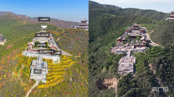左圖為太山博物館微信公眾號(hào)全景圖,右圖為記者4日航拍畫面(央廣網(wǎng)記者 張晉鵬 制圖)