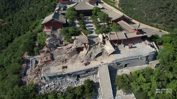 6月3日,太原市太山博物館發(fā)布閉館公告,稱因近期發(fā)生地質(zhì)災(zāi)害,即日起將臨時(shí)閉館。4日,央廣網(wǎng)記者實(shí)地探訪事發(fā)地,航拍畫面顯示, 山上部分建筑坍塌嚴(yán)重,建筑外圍一處山體出現(xiàn)大坑,大量黃土裸露。