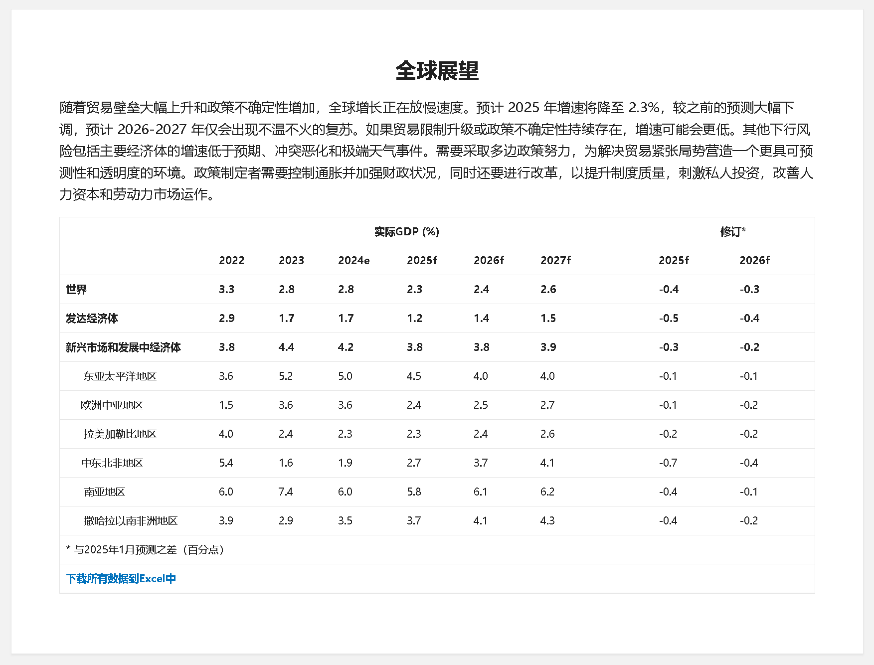2025年6月10日 除衰退外全球經(jīng)濟(jì)將創(chuàng)下2008 年以來最慢增速; 70%經(jīng)濟(jì)體2025年增速預(yù)測下調(diào) 分析
