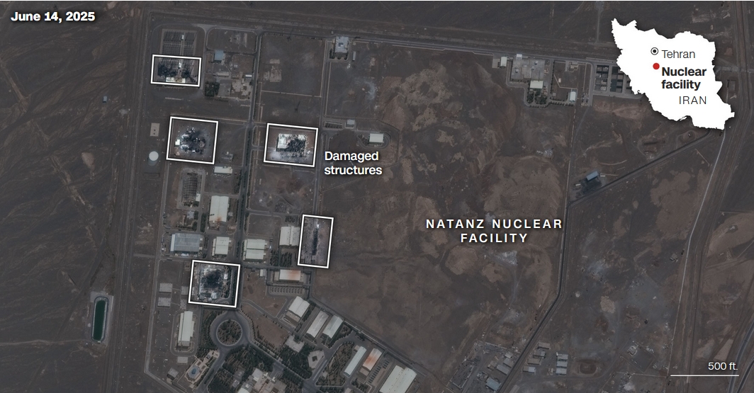 美國(guó)有線電視新聞網(wǎng)(CNN)15日?qǐng)?bào)道,以色列此次空襲針對(duì)的是伊朗中北部三地——納坦茲(Natanz)、伊斯法罕(Isfahan)和福爾道(Fordow)的三個(gè)關(guān)鍵核設(shè)施。最新商業(yè)衛(wèi)星圖像顯示,至少在納坦茲和伊斯法罕,攻擊似乎已對(duì)地面設(shè)施造成了“重大破壞”。