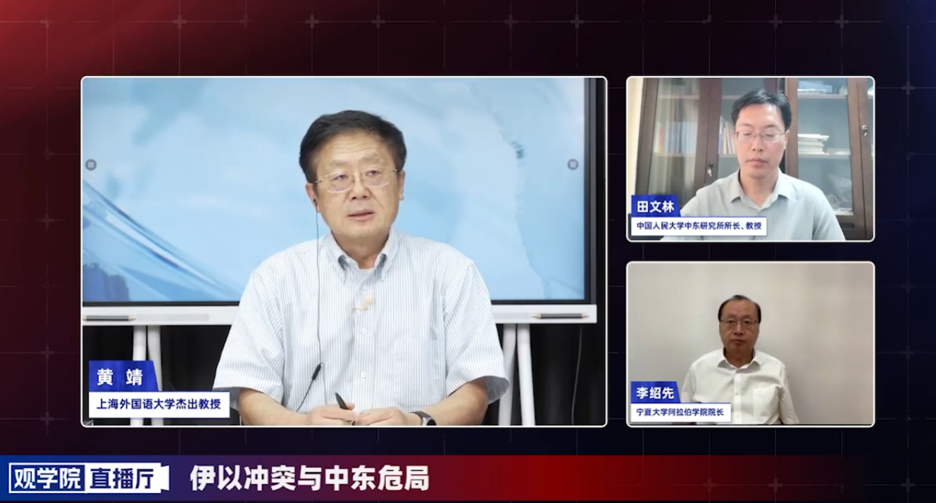 觀察者網(wǎng)《觀學(xué)院直播廳》第九期邀請上海外國語大學(xué)杰出教授黃靖,寧夏大學(xué)阿拉伯學(xué)院院長、中國中東學(xué)會副會長李紹先,中國人民大學(xué)區(qū)域國別研究院中東研究所所長、教授田文林進(jìn)行對話,解讀當(dāng)前的伊以沖突局勢。以下為文字稿下篇,上篇見鏈接。