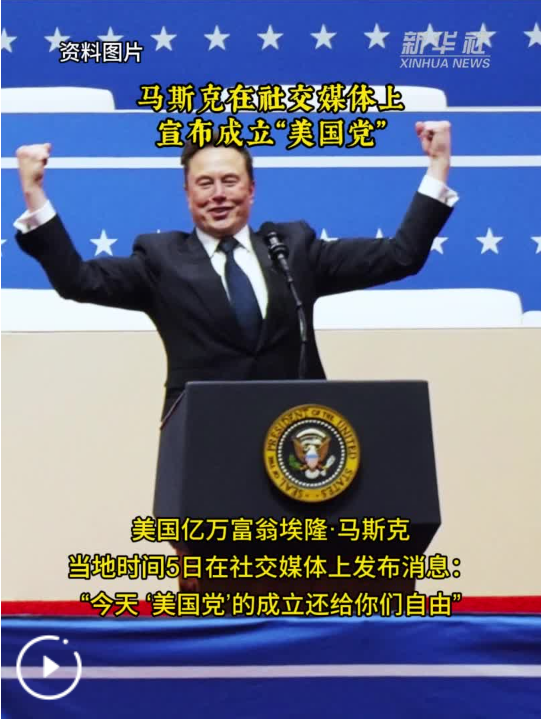 新華社洛杉磯7月5日電(記者黃恒)美國億萬富翁埃隆·馬斯克當(dāng)?shù)貢r間5日在社交媒體上發(fā)布消息:“今天,‘美國黨’的成立還給你們自由?!?/span>