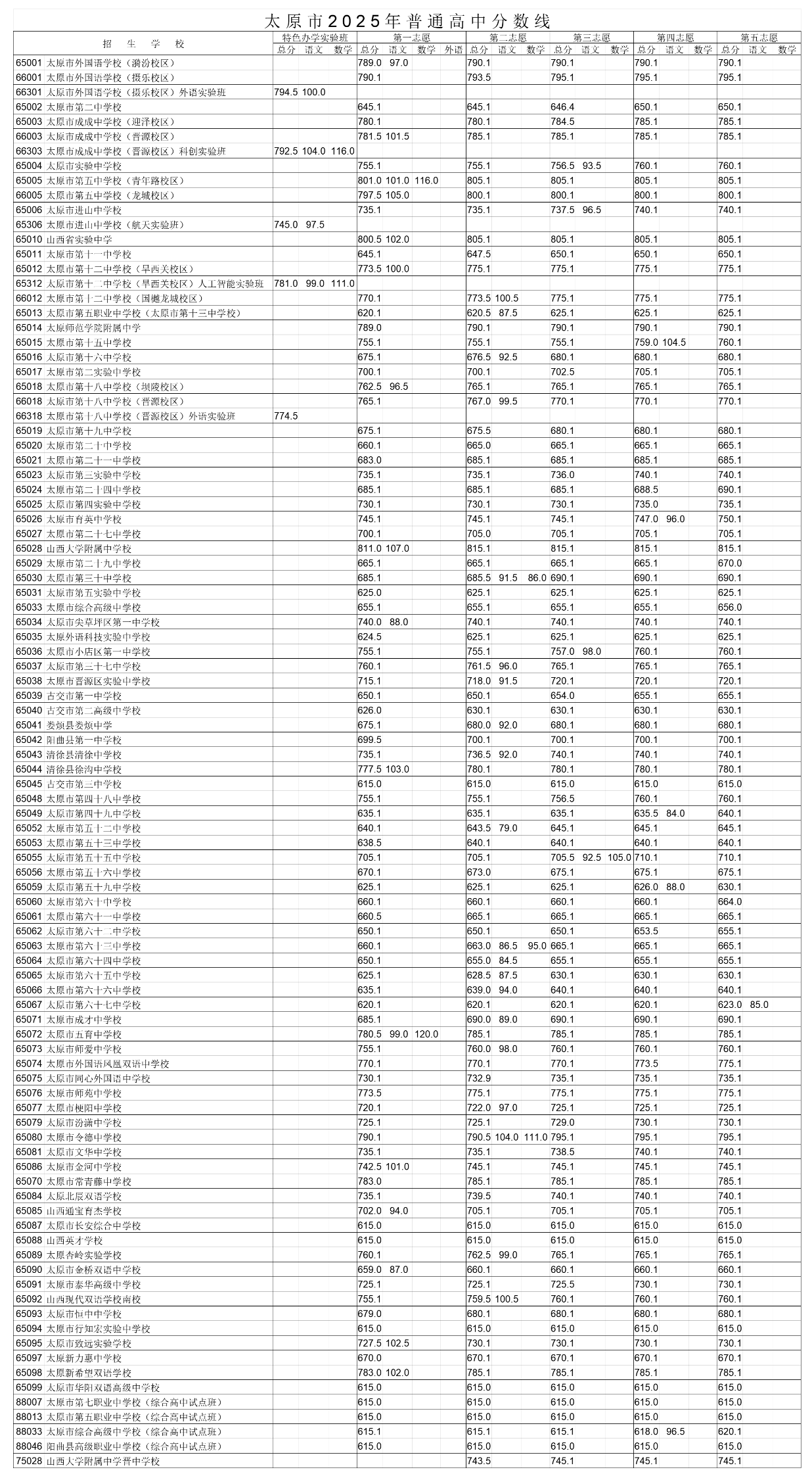 太原市進(jìn)山中學(xué)校航天實(shí)驗(yàn)班、太原市第十二中學(xué)校(旱西關(guān)校區(qū))人工智能實(shí)驗(yàn)班、太原市外國(guó)語學(xué)校(攝樂校區(qū))外語實(shí)驗(yàn)班、太原市第十八中學(xué)校(晉源校區(qū))外語實(shí)驗(yàn)班、太原市成成中學(xué)校(晉源校區(qū))科創(chuàng)實(shí)驗(yàn)班,分?jǐn)?shù)線控制在中考總分85%(2025年為722.5分)的基礎(chǔ)上,按計(jì)劃、按分?jǐn)?shù)、按志愿擇優(yōu)錄取。