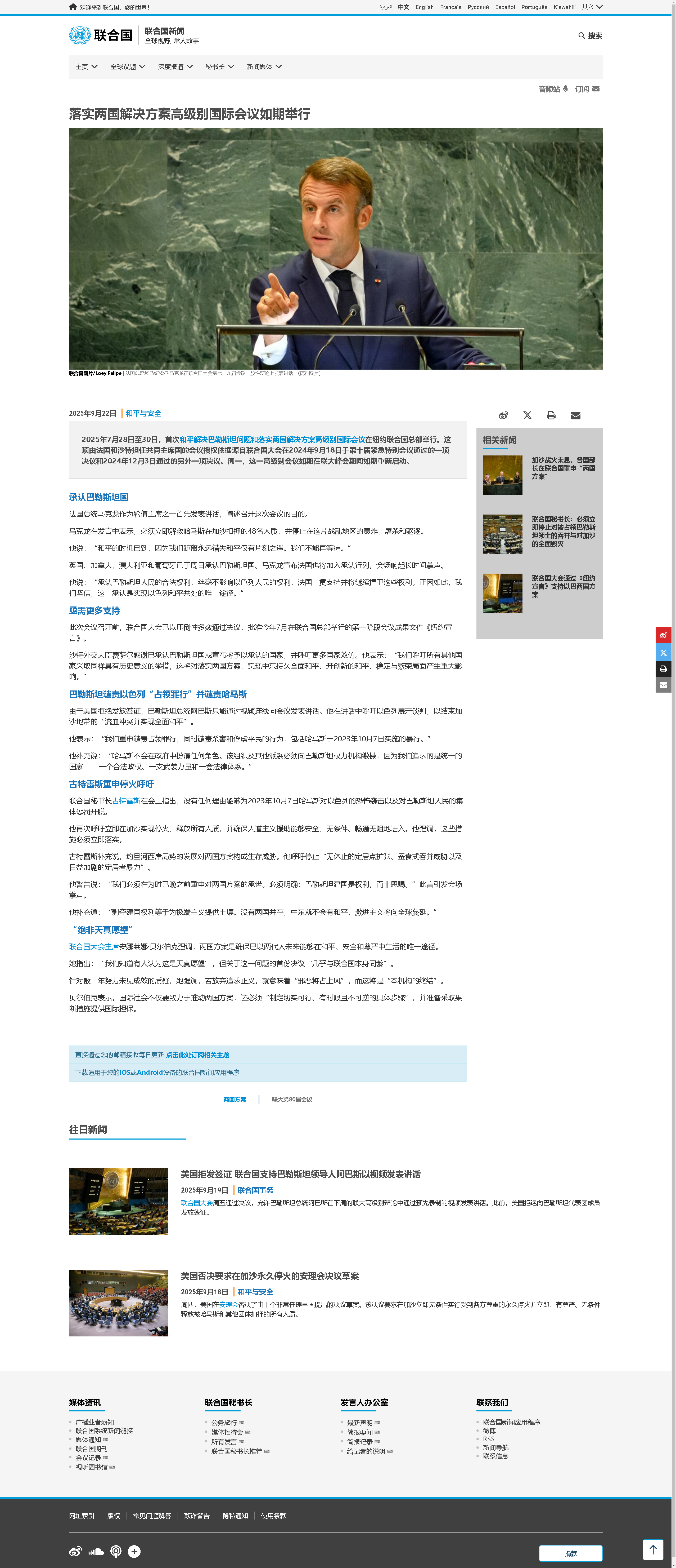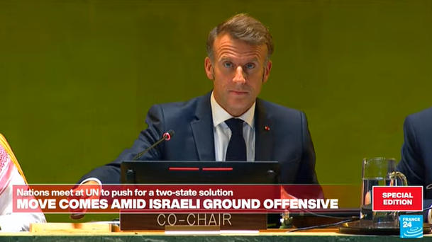 隨后,馬克龍宣布正式承認巴勒斯坦國,并宣布一系列外交舉措,包括法國將在改革、?;鸺肮R斯釋放剩余人質等條件下開設駐巴勒斯坦國大使館。