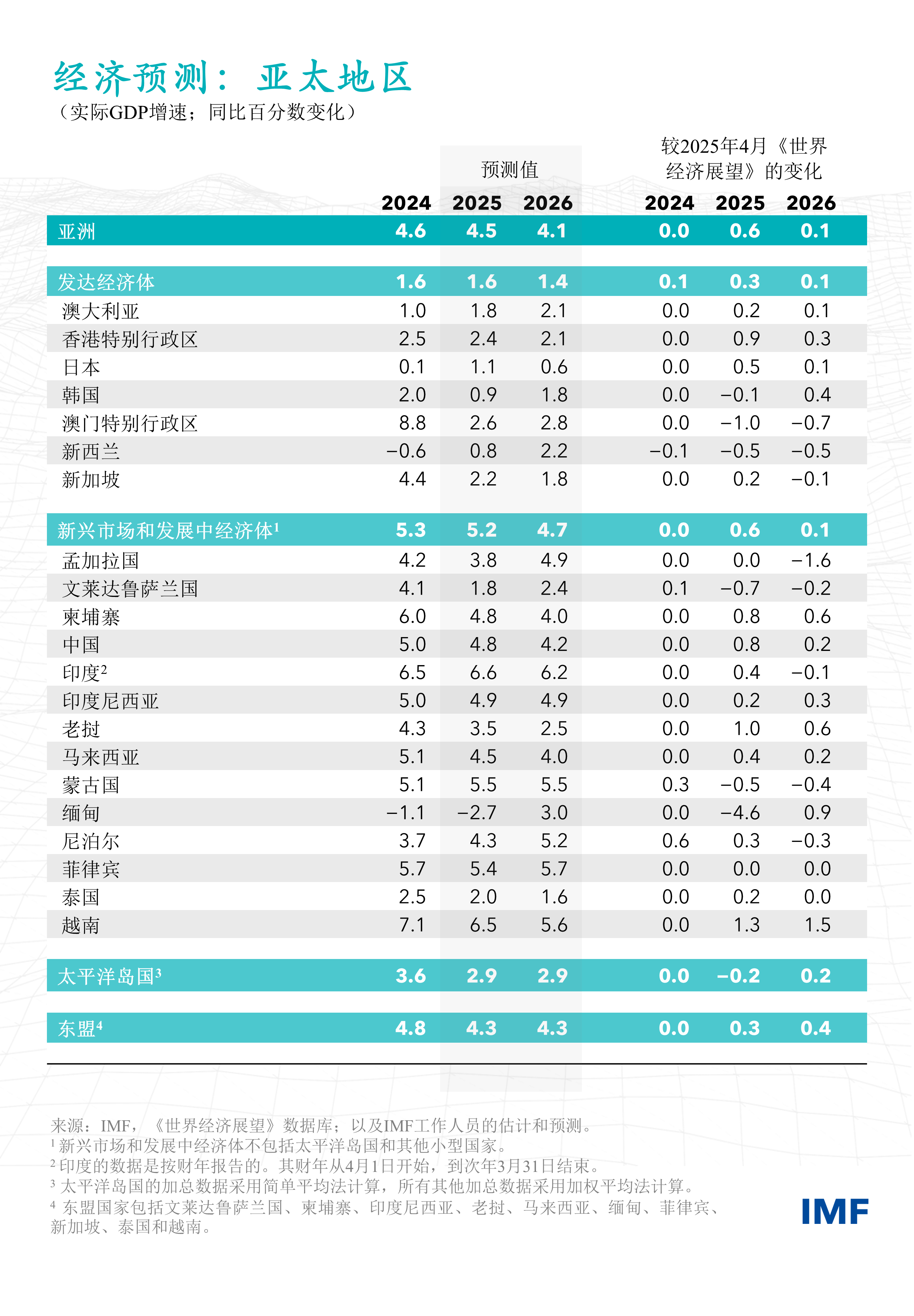 新華社香港10月24日電(黃茜恬)國際貨幣基金組織(IMF)24日在香港發(fā)布最新一期亞太地區(qū)經(jīng)濟(jì)展望報告,預(yù)計2025年亞太地區(qū)經(jīng)濟(jì)增速為4.5%,比4月預(yù)測提高0.6個百分點。
