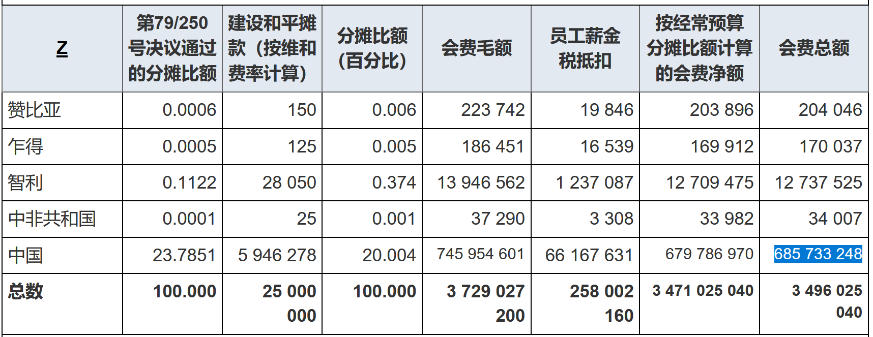 據(jù)聯(lián)合國介紹,中國是聯(lián)合國第二大會費(fèi)分?jǐn)倗?,所分?jǐn)偙阮~為20%,僅次于美國的22%,遠(yuǎn)高于排在第三的日本的6.93%。