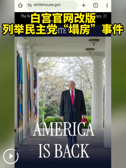 美國(guó)有線電視新聞網(wǎng)15日?qǐng)?bào)道,白宮網(wǎng)站近期改版,將民主黨主政期間一些“塌房”事件列入白宮大事記。白宮官員說(shuō),他們這樣做是為了“取笑民主黨人,指出他們的虛偽”,以此報(bào)復(fù)民主黨人對(duì)總統(tǒng)特朗普拆除白宮東翼之后發(fā)表的批評(píng)之聲。(視頻:王豐豐)