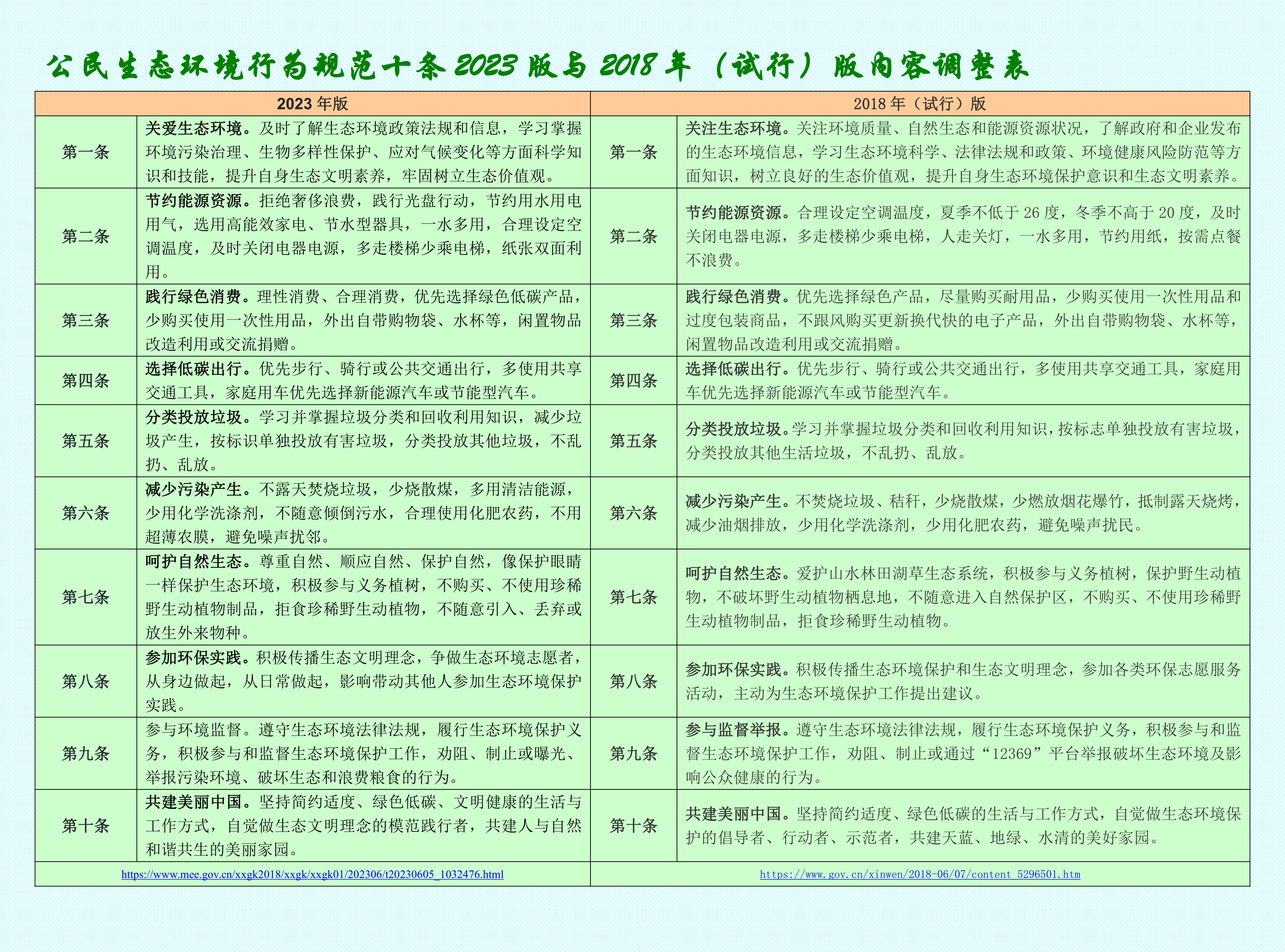 2018年6月5日,《公民生態(tài)環(huán)境行為規(guī)范(試行)》發(fā)布,成為全國(guó)層面首個(gè)針對(duì)公民的較為全面的生態(tài)環(huán)境行為規(guī)范,被稱(chēng)為“公民十條”。自發(fā)布實(shí)施以來(lái),通過(guò)宣傳引導(dǎo)和政策推動(dòng),“公民十條”對(duì)提升公民生態(tài)文明意識(shí)、增強(qiáng)公民踐行綠色低碳行為的自覺(jué)性和主動(dòng)性發(fā)揮了積極作用。