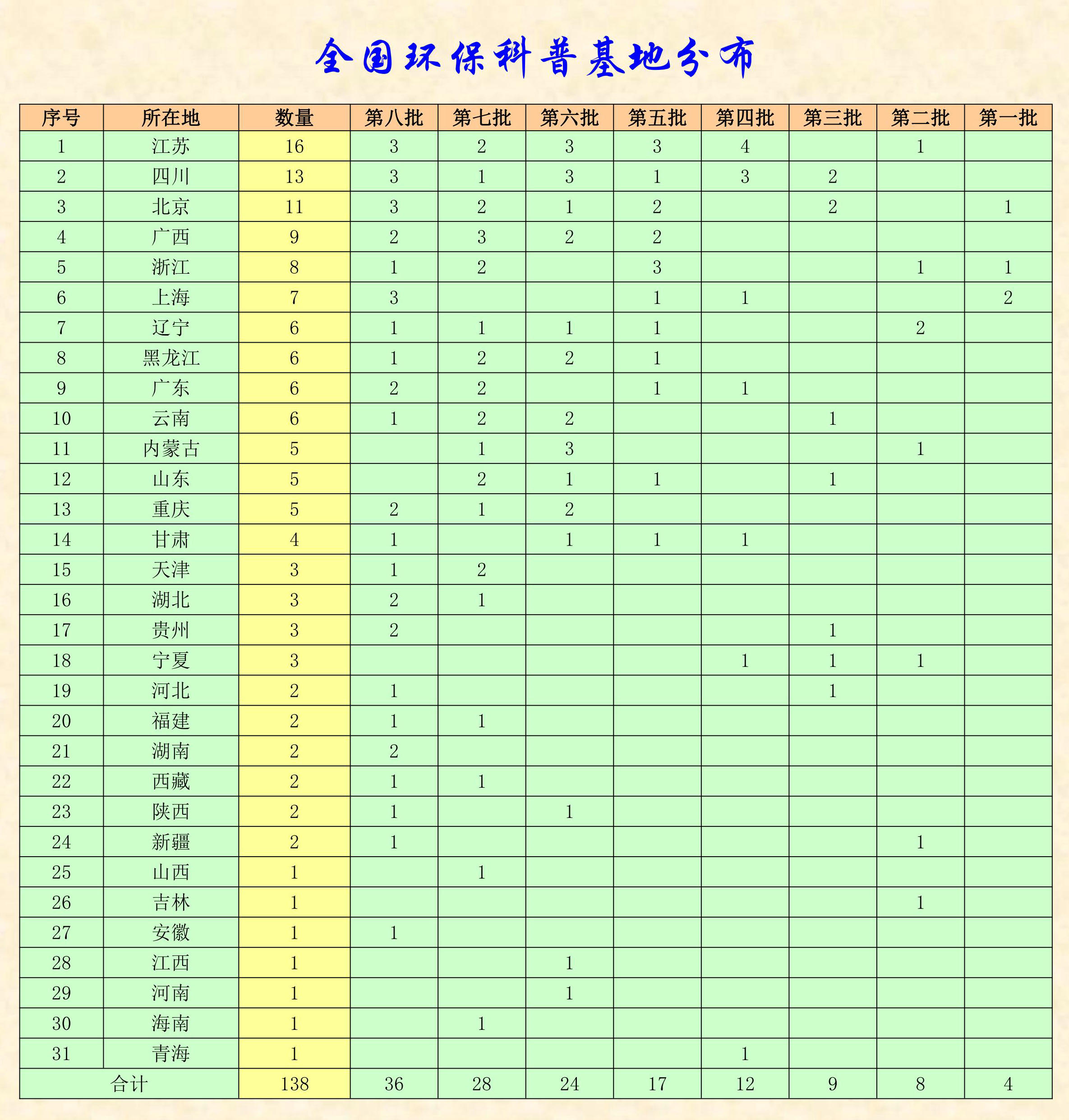 國家生態(tài)環(huán)境科普基地評審創(chuàng)建工作于2006年啟動實施,截至目前,全國共創(chuàng)建科普基地138家,覆蓋31個省份,類型涵蓋科普場館、自然保護地、企業(yè)、產業(yè)園區(qū)、科研院所、教育培訓六個類別,年服務上億人次,已成為展示生態(tài)環(huán)境保護科技成果與生態(tài)文明實踐成就的重要場所,向公眾普及生態(tài)環(huán)境科技知識、提高全民生態(tài)與科學文化素質的重要陣地。