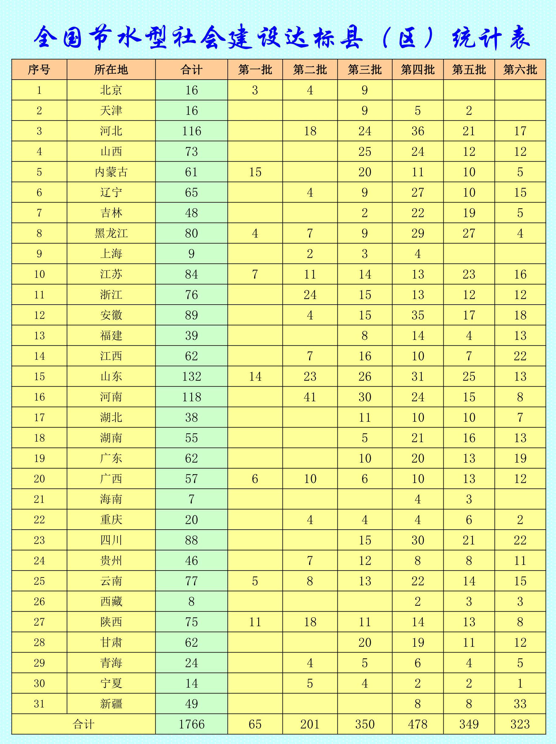 第六批節(jié)水型社會(huì)建設(shè)達(dá)標(biāo)縣(區(qū))名單