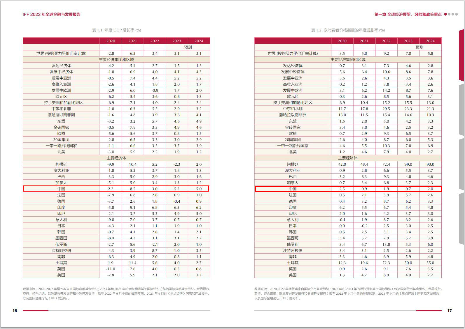 中新網(wǎng)廣州10月28日電(中新財經(jīng) 宮宏宇)“2023年全球經(jīng)濟增長進一步放緩,預(yù)期增長3.1%,低于2022年的3.4%。2024年,全球經(jīng)濟增長預(yù)計將保持在3.1%的疲軟水平。中國經(jīng)濟2023年和2024年預(yù)計將分別增長5.2%和5%?!眹H金融論壇(IFF)20周年全球年會上最新發(fā)布的《IFF2023年全球金融與發(fā)展報告》指出。