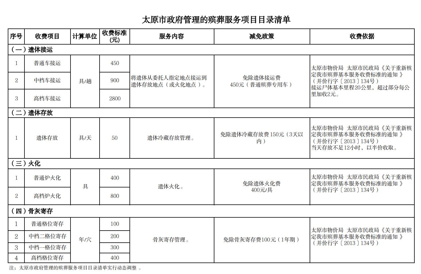 《太原市政府管理的殯葬服務(wù)項(xiàng)目目錄清單》11月15日公布,涉及4項(xiàng)收費(fèi)項(xiàng)目。