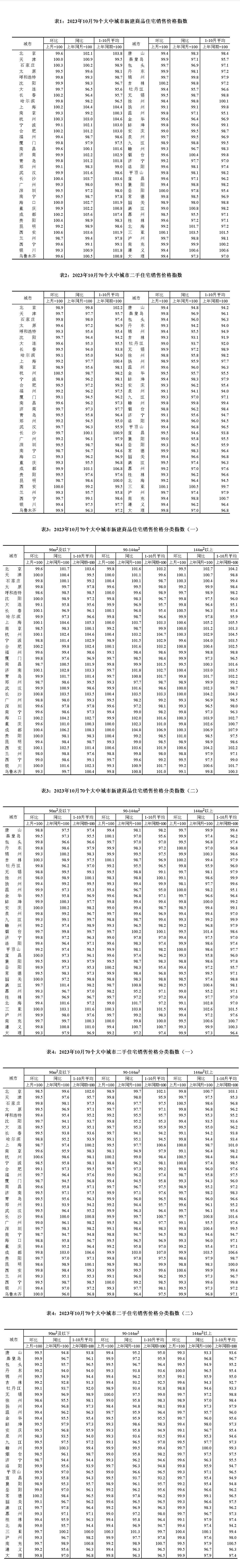 11月16日,國家統(tǒng)計局發(fā)布數(shù)據(jù)顯示,2023年10月份,70個大中城市商品住宅銷售價格環(huán)比下降城市個數(shù)略增,各線城市商品住宅銷售價格環(huán)比下降、同比漲跌互現(xiàn)。其中,新建商品住宅和二手住宅銷售價格環(huán)比下降城市分別有56個和67個,均比上月增加2個;新建商品住宅銷售價格同比下降城市有47個,比上月增加2個;二手住宅同比下降城市有67個,個數(shù)與上月相同。