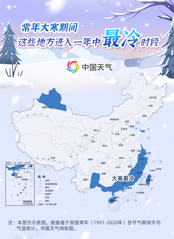 不過,從各區(qū)域平均氣溫來看,也有不少地方是在大寒節(jié)氣達(dá)到全年最低,比如華東和華南沿海、新疆北部、山東半島局地部分地區(qū),總體而言,南方冷在大寒的區(qū)域相對更多一些。