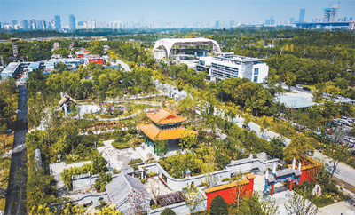安徽合肥園博園設(shè)置38個城市展園,展示不同城市的文化特色和園林建筑風格,吸引市民、游客前來參觀游覽。解 琛攝(新華社發(fā))