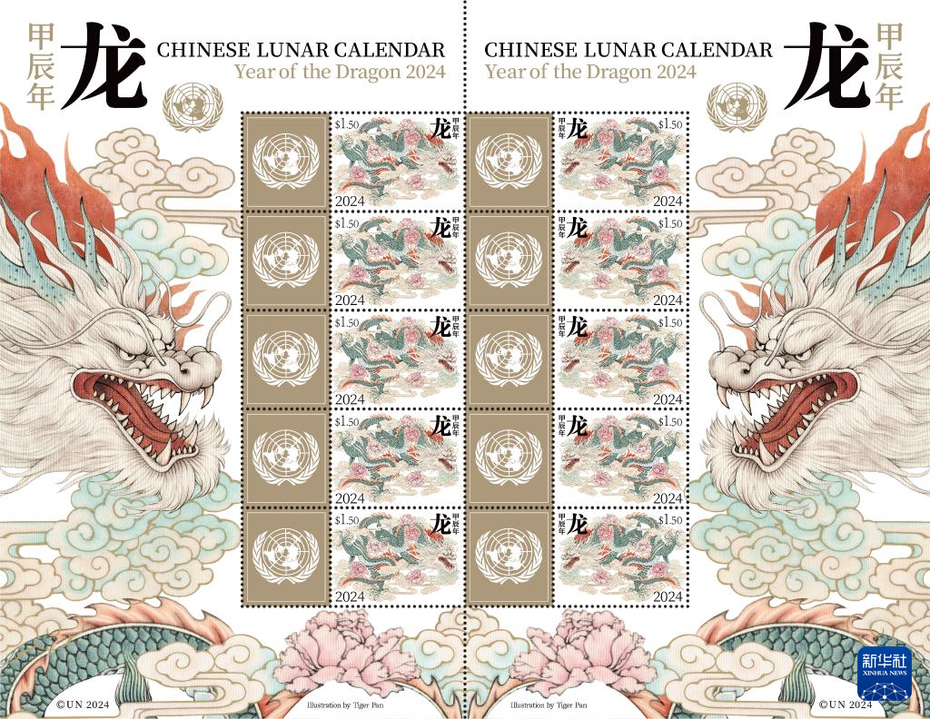 聯(lián)合國郵政管理局將于1月19日在紐約發(fā)行中國農歷甲辰年特別版郵票版張——龍票版張,慶祝中國農歷新年的到來。這是該郵票版張樣圖。新華社發(fā)(聯(lián)合國郵政管理局供圖)