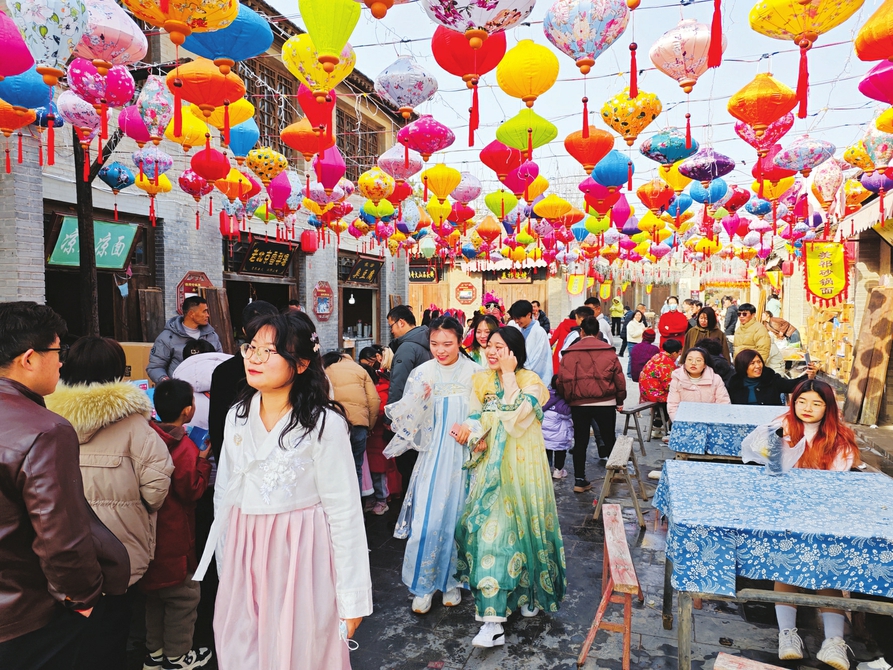 大年初一,游人穿梭于周倉文化園景區(qū),沉浸式體驗春節(jié)期間的別樣快樂。(周明飛攝)