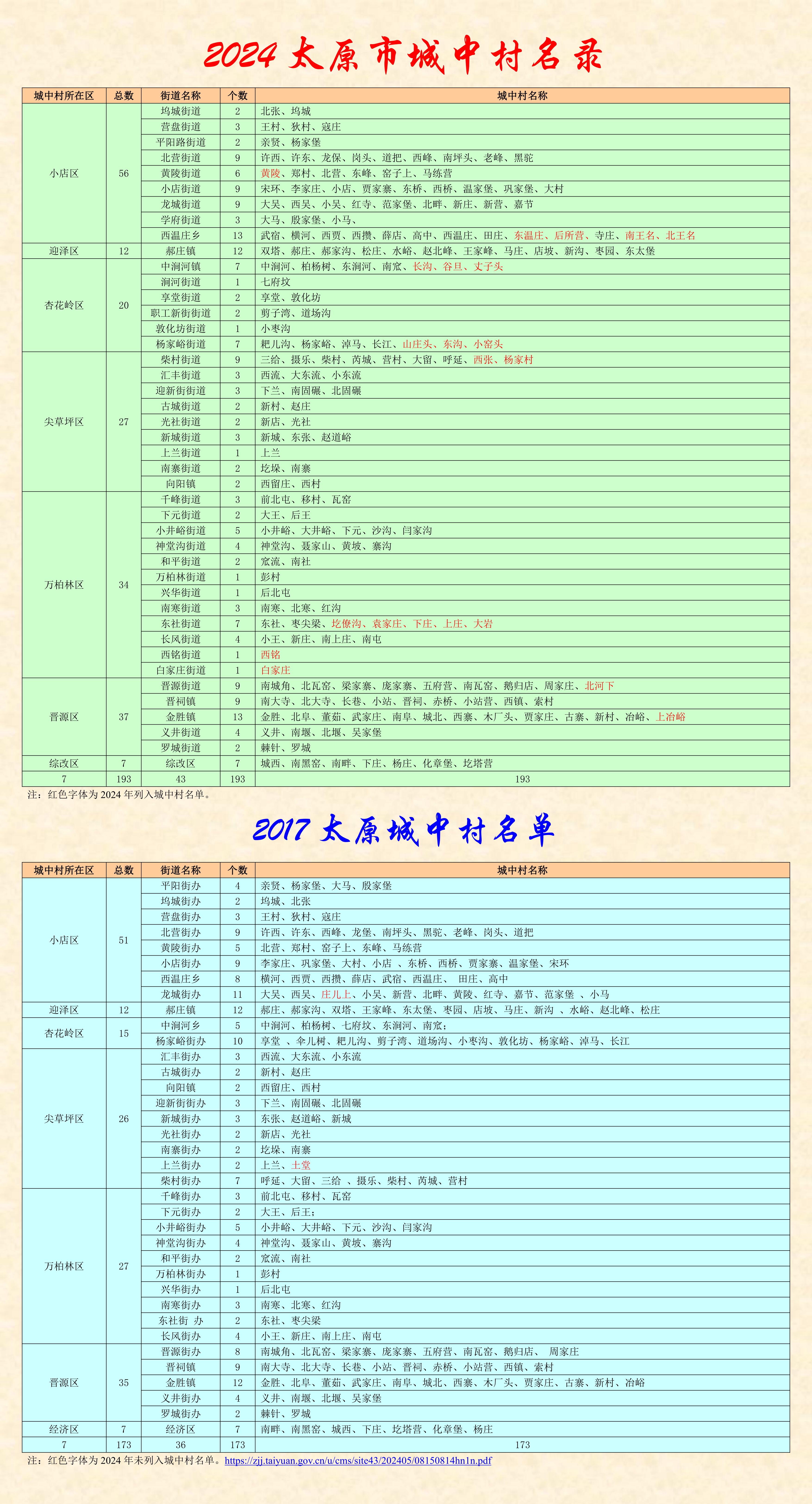 世界晉商網(wǎng)注意到,這與2017年的太原173個(gè)城中村名單相較,有些許不同。