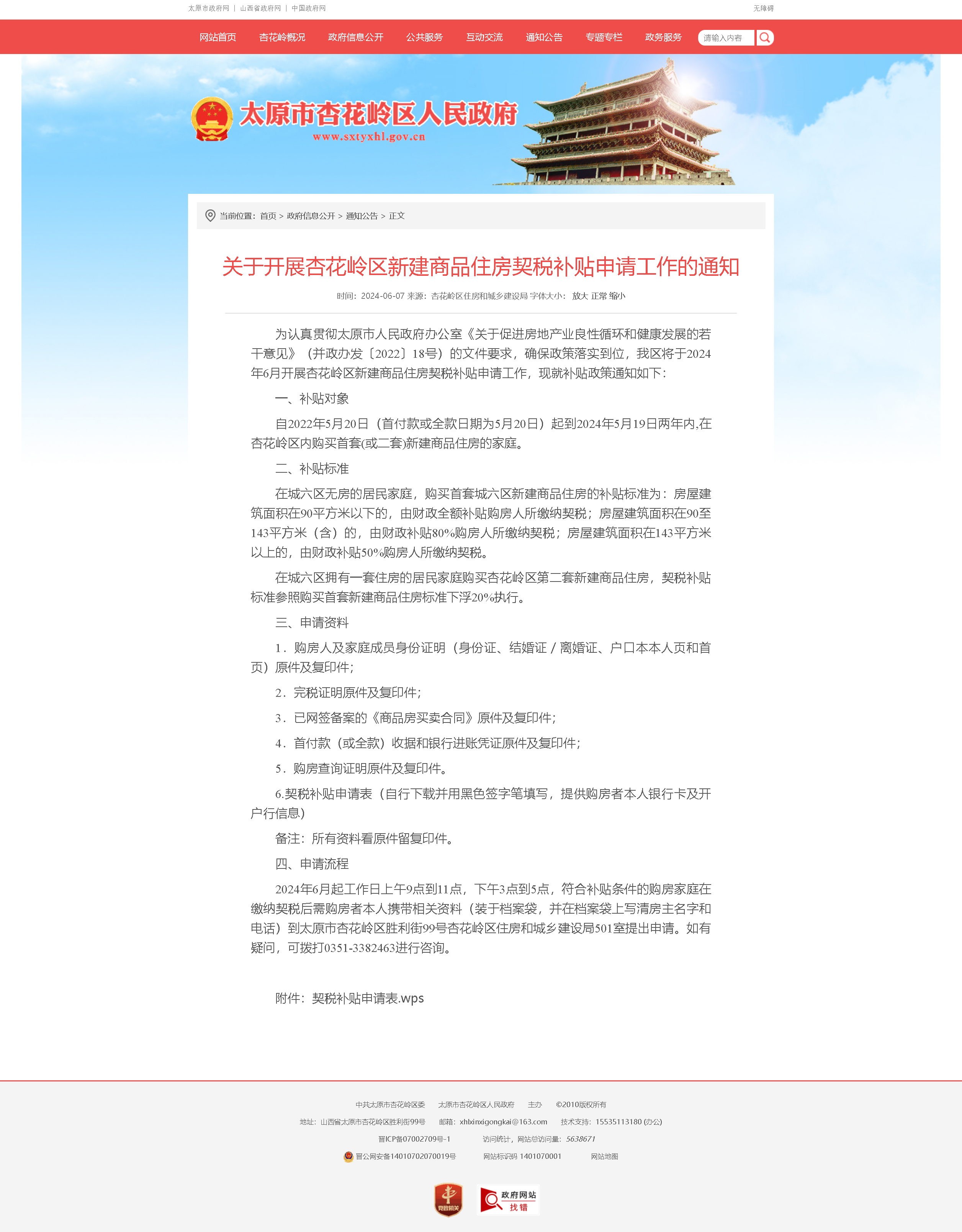 本次補貼申請工作為2022年太原市人民政府辦公室發(fā)布的《關于促進房地產業(yè)良性循環(huán)和健康發(fā)展的若干意見》(太原樓市36條)落實政策之一?!疤瓨鞘?6條”中明確提出“支持剛性購房需求”和“支持改善性購房需求”兩條內容,分別對首套房、二套房契稅補貼提出明確要求。此外,“太原樓市36條”自2022年5月20日起施行,有效期2年,這些政策內容均與上述《通知》提出的補貼對象、補貼標準等一致。
