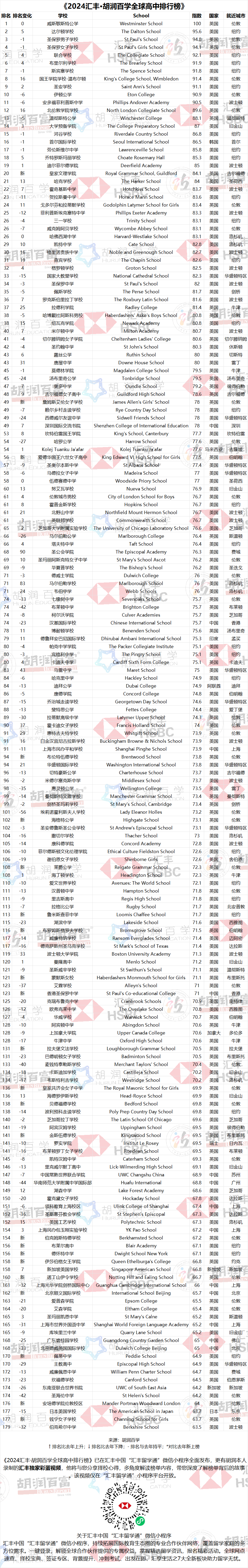 2023-2024匯豐?胡潤(rùn)百學(xué)全球高中排行榜