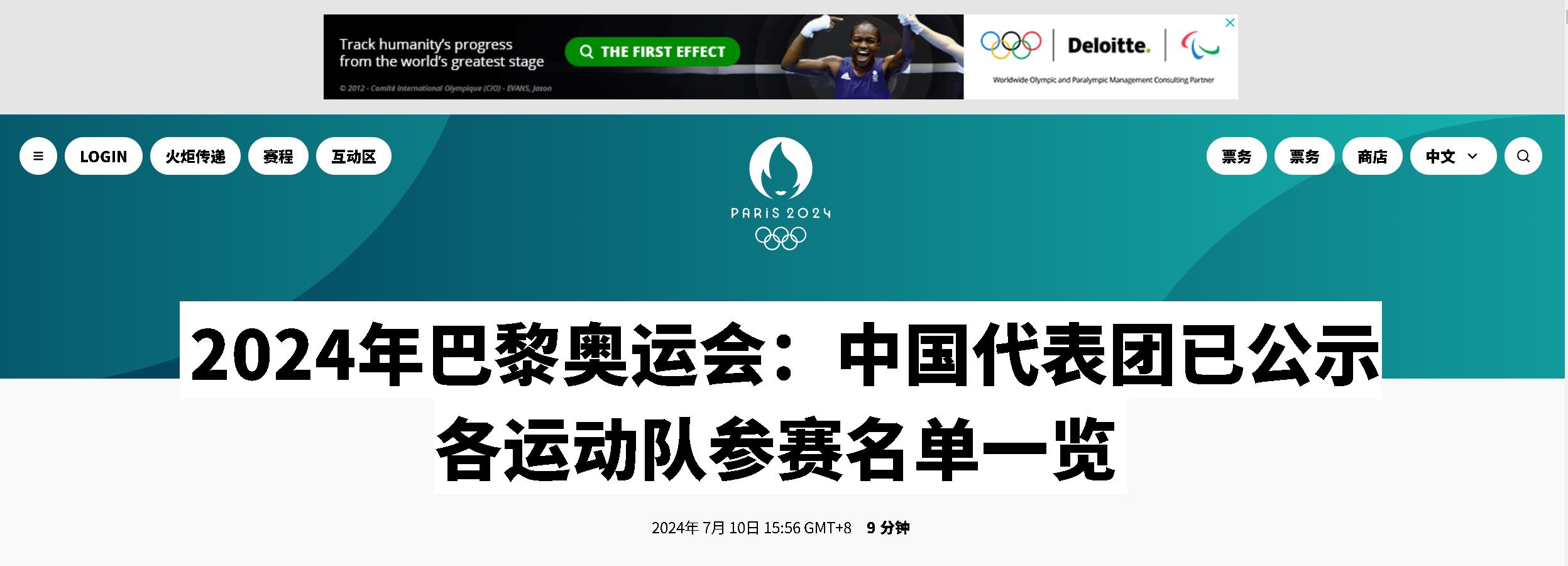 【學習園地】2024年巴黎奧運會中國體育代表團名單